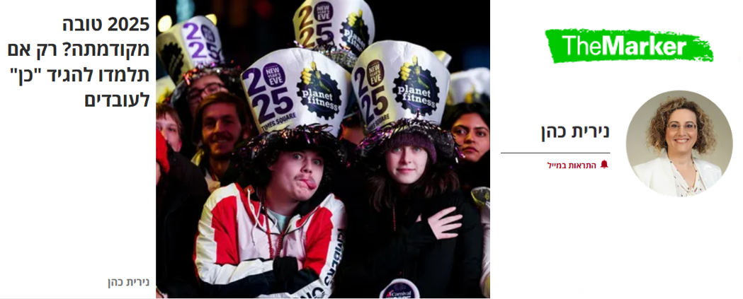 2025 היא השנה שבו נתחיל להרכיב מחדש את הפאזל של עולם העבודה המשתנה מתוך הבנה שאנחנו לא יכולים לכפות את החלקים למקומות הישנים. נצטרך ללמוד להתנגד לדחף להציע פתרונות מהירים או לחזור למודלים שכבר אינם מתאימים למציאות של היום. שנאמץ את העמימות שבתהליך, ונבין שבהירות תצמח רק מתוך ניסוי ויצירה משותפת. 2025 היא השנה שבה נעצב במקום העבודה את שיתופי הפעולה שיניעו פרודוקטיביות לצד גמישות שמבטיחה חוסן. ומתוך המשברים הכואבים נבנה את העתיד.